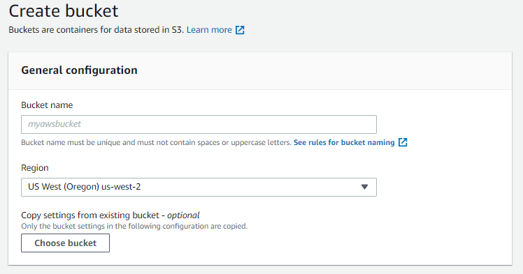 • Step 5: Review rest of the settings, or you can leave them as they are and click Create Bucket.